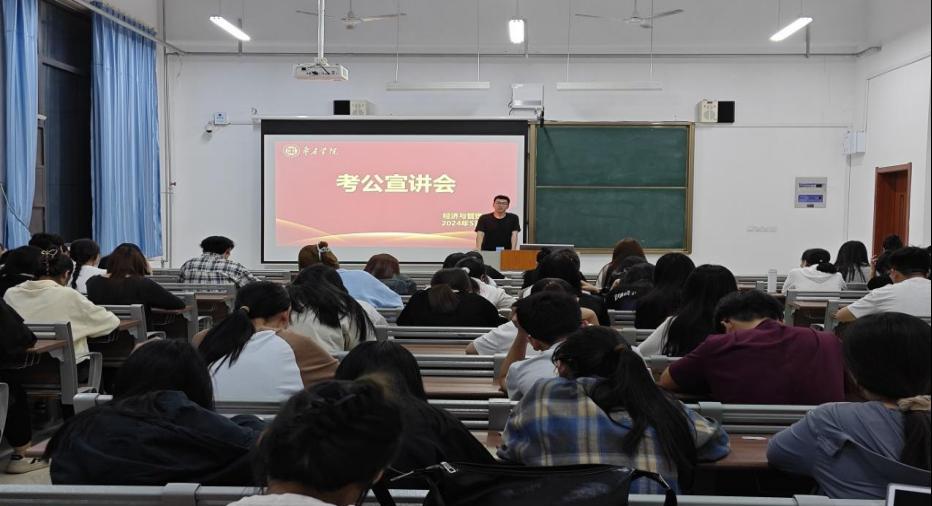 为帮助大三学生更好了解公务员考试的相关信息,掌握科学备考策略与应试技巧,助力学生顺利迈向公职生涯,5月14日晚,千亿QY88官网在增信楼104教室举办考公经验交流会,90余名大三学生满怀期待到场参与。