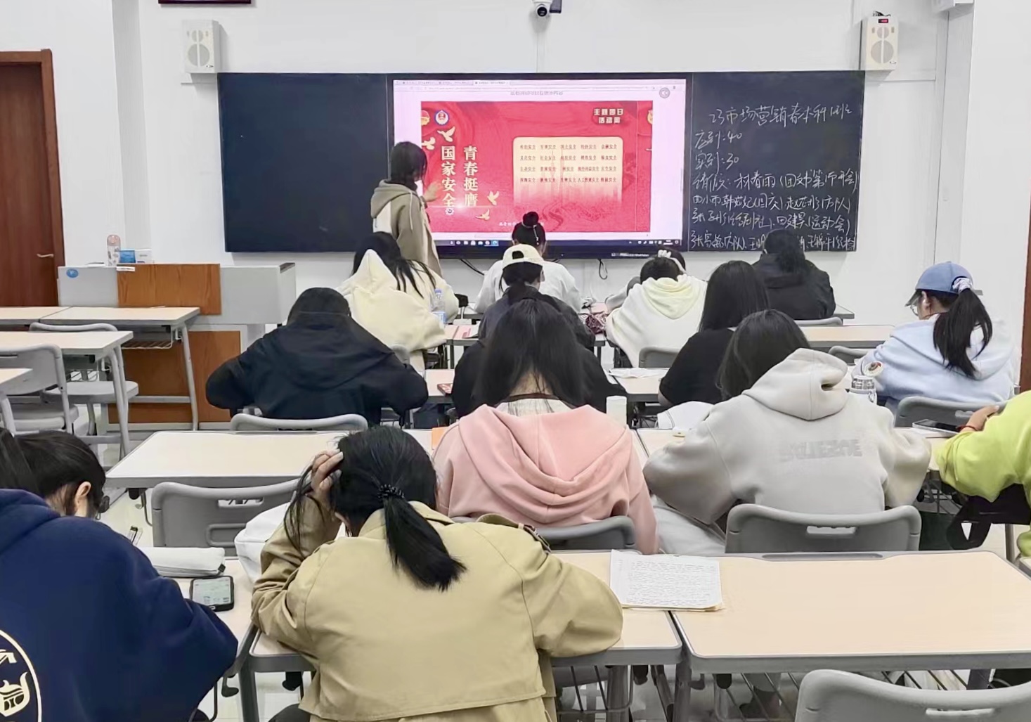 4月15日晚上,各班开展国家安全主题团课,观看学习视频并进行研讨交流,普及国家安全相关知识。同学们认真听讲,积极参与问答,并立志坚持关注国际形势和国家政策,紧跟国家步伐。