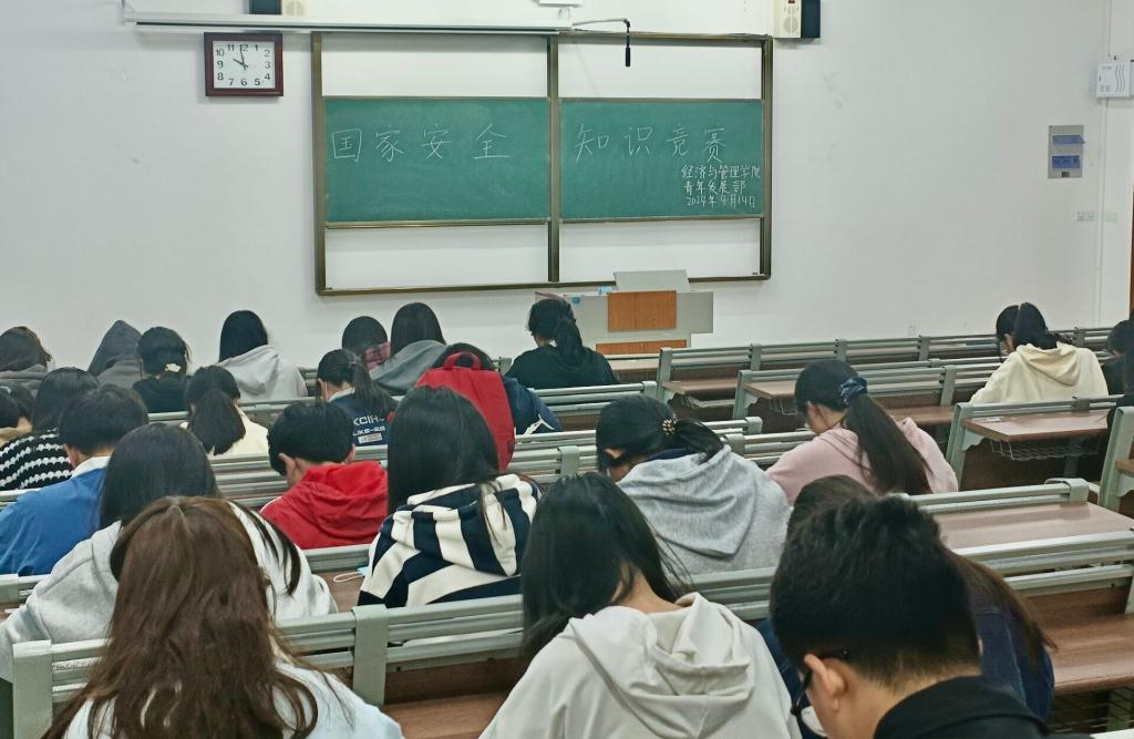 4月14日上午,国家安全知识竞赛在增信楼3120室举办,考试内容涵盖国家安全法律法规、总体国家安全观、国家安全制度等。