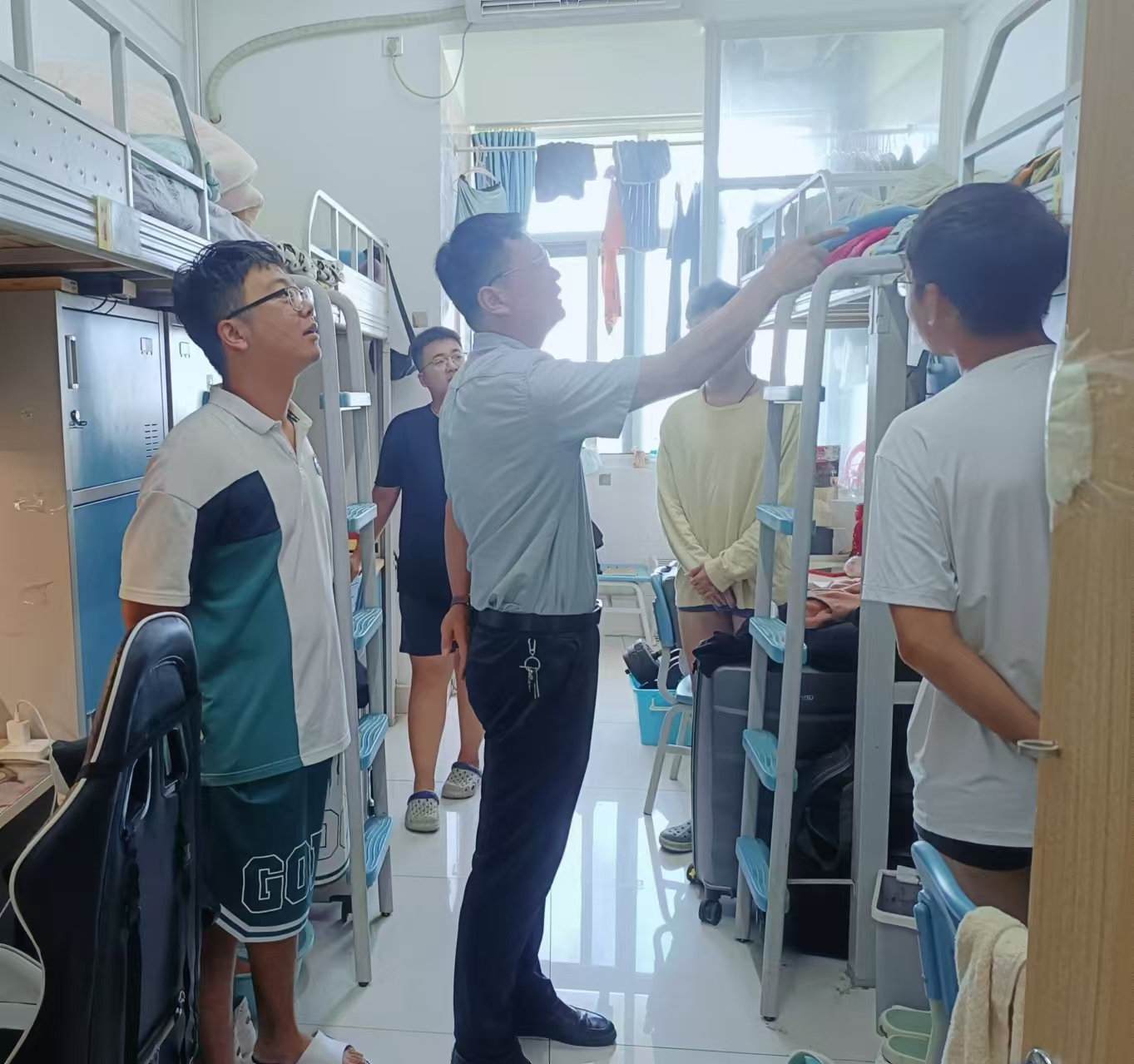 新学期伊始,为确保学生宿舍的卫生与安全,9月2日上午,千亿QY88官网党委书记艾衍辉带队,开展全院宿舍卫生与安全大检查。此次检查旨在发现并解决宿舍中存在的卫生与安全隐患,为同学们提供一个更加安全、舒适的居住环境。