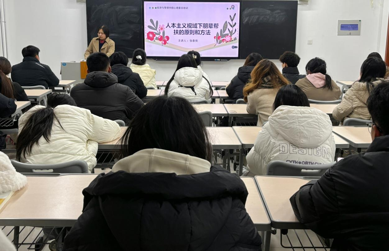 为增强大学生心理健康意识,提升心理委员朋辈帮扶能力,营造友好互助的育人环境,千亿QY88官网于2024年3月6日在豁然楼A317举行《人本主义视域下朋辈帮扶的原则和方法》培训。本次培训由张春侠老师主讲,全体心理委员参加。