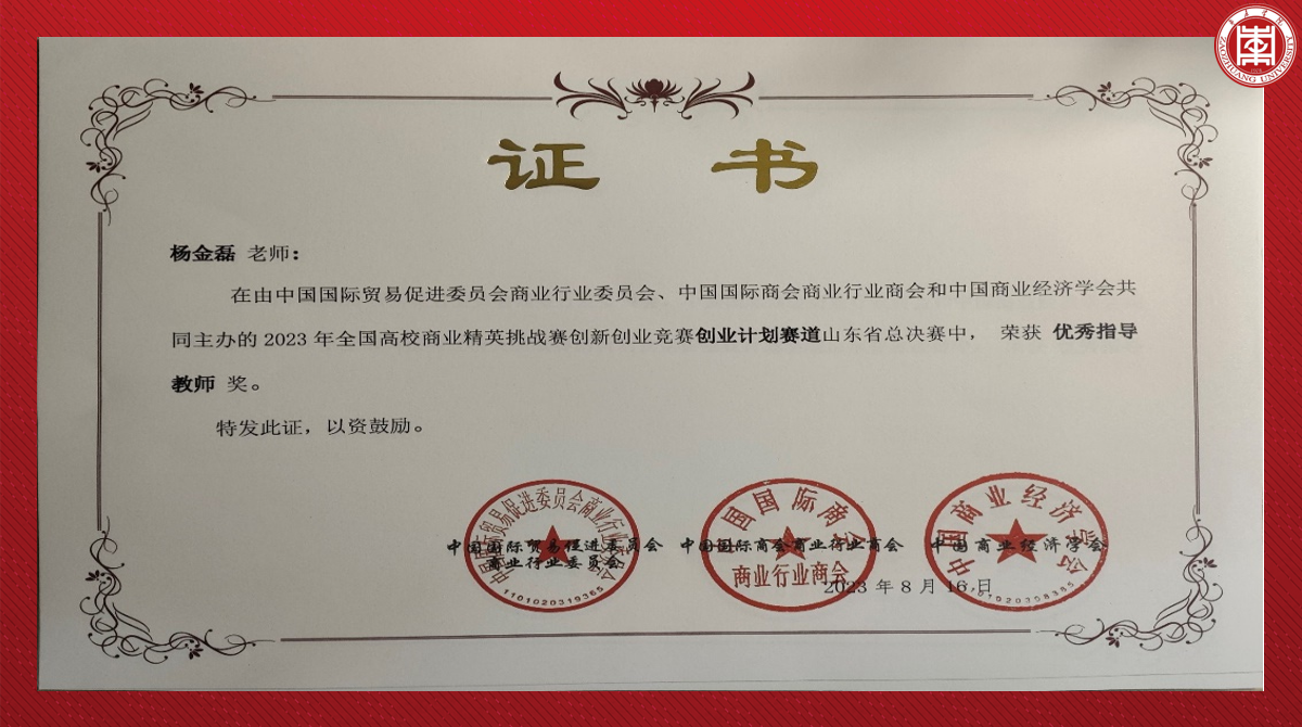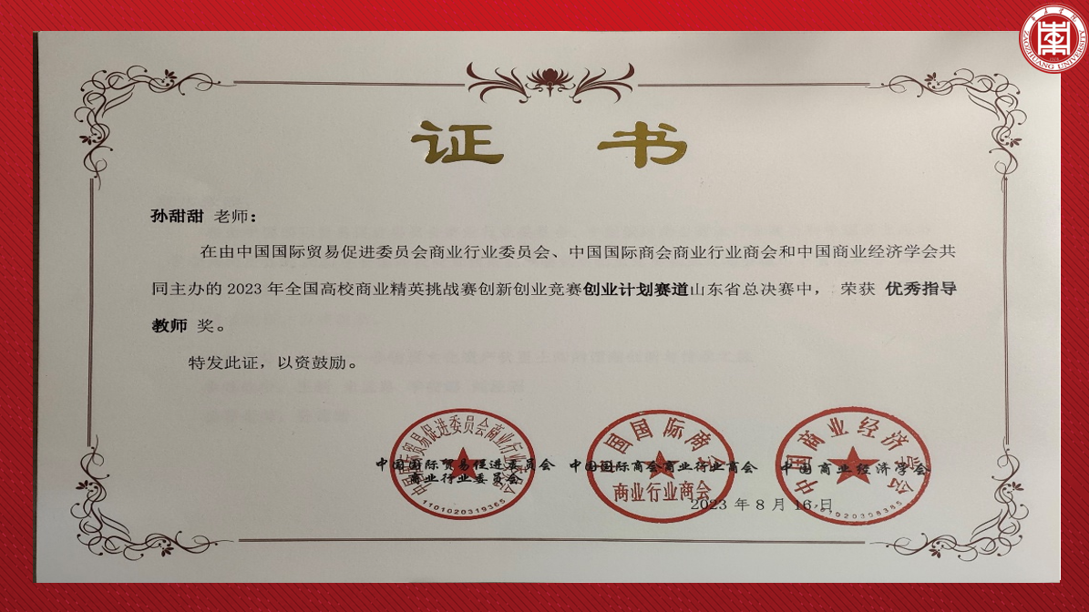 近日,2023年全国高校商业精英挑战赛创新创业竞赛(创业计划赛道)山东省总决赛落下帷幕,创业计划赛道共有来自全省70多所院校的848支队伍入围。由我院代超越、王新两位参赛选手所带领的2个原创项目代表枣庄学院成功入围省级决赛,与全省众多高校同台竞技、力克群雄,并斩获山东省三等奖2项。展现了我院学子扎实的专业能力、卓越的创新精神和出色的团队协作能力。其中我院教师杨金磊、孙甜甜荣获“优秀指导老师”奖。