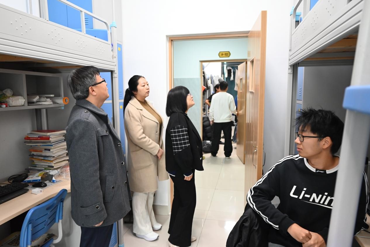 谢金萍在检查中与学生亲切交流,鼓励全体同学增强安全意识,自觉遵守宿舍管理规定,共同打造安全、文明、和谐的宿舍环境。