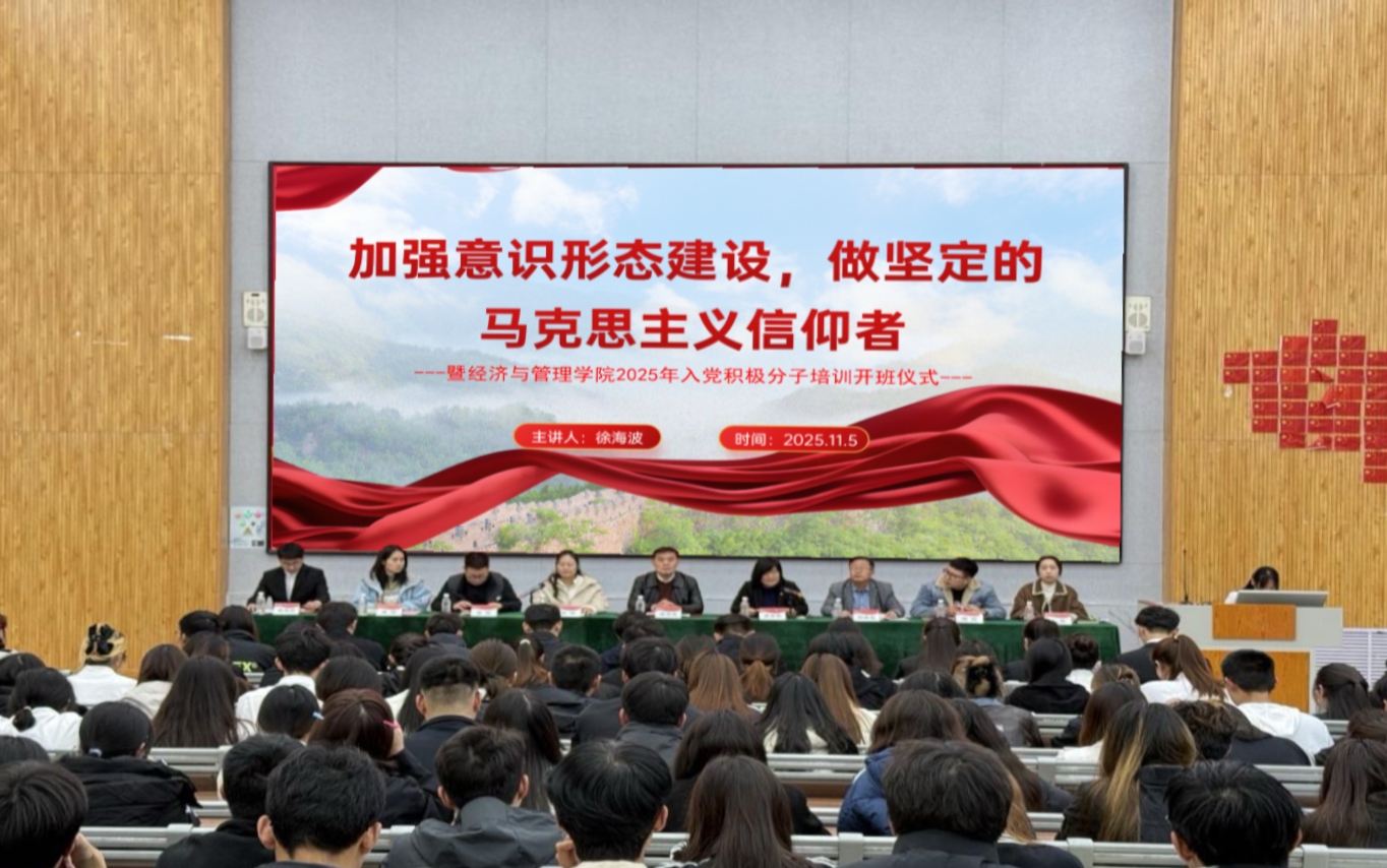 为加强对青年学生的思想引领,扎实推进意识形态建设工作,2025年11月5日,千亿QY88官网党委书记徐海波在增信楼113报告厅主讲题为“加强意识形态建设,做坚定的马克思主义信仰者”的专题党课。本次党课面向全院学生党员和入党积极分子开展。