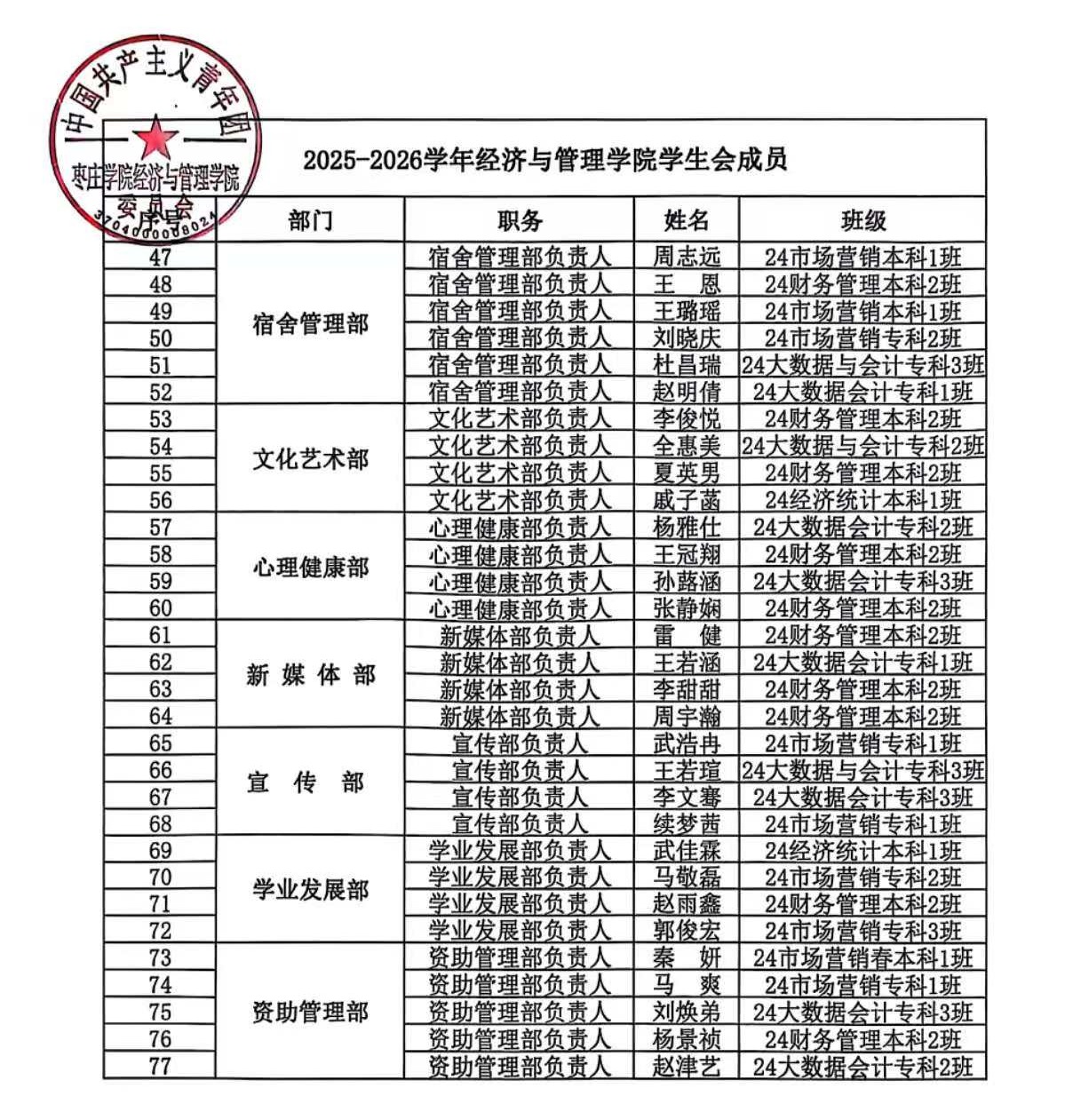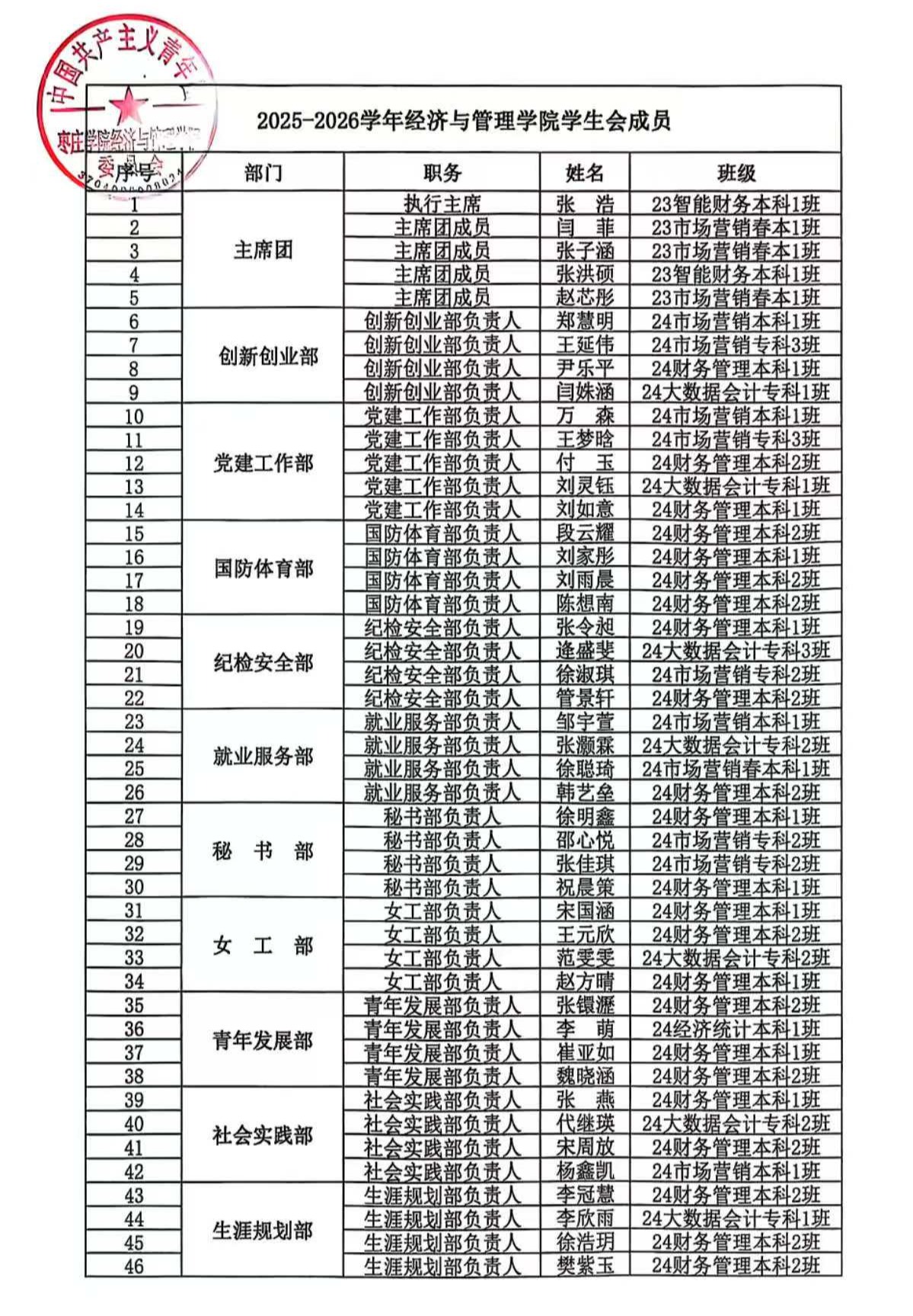 2025-2026学年千亿QY88官网学生会、自律会成员名单